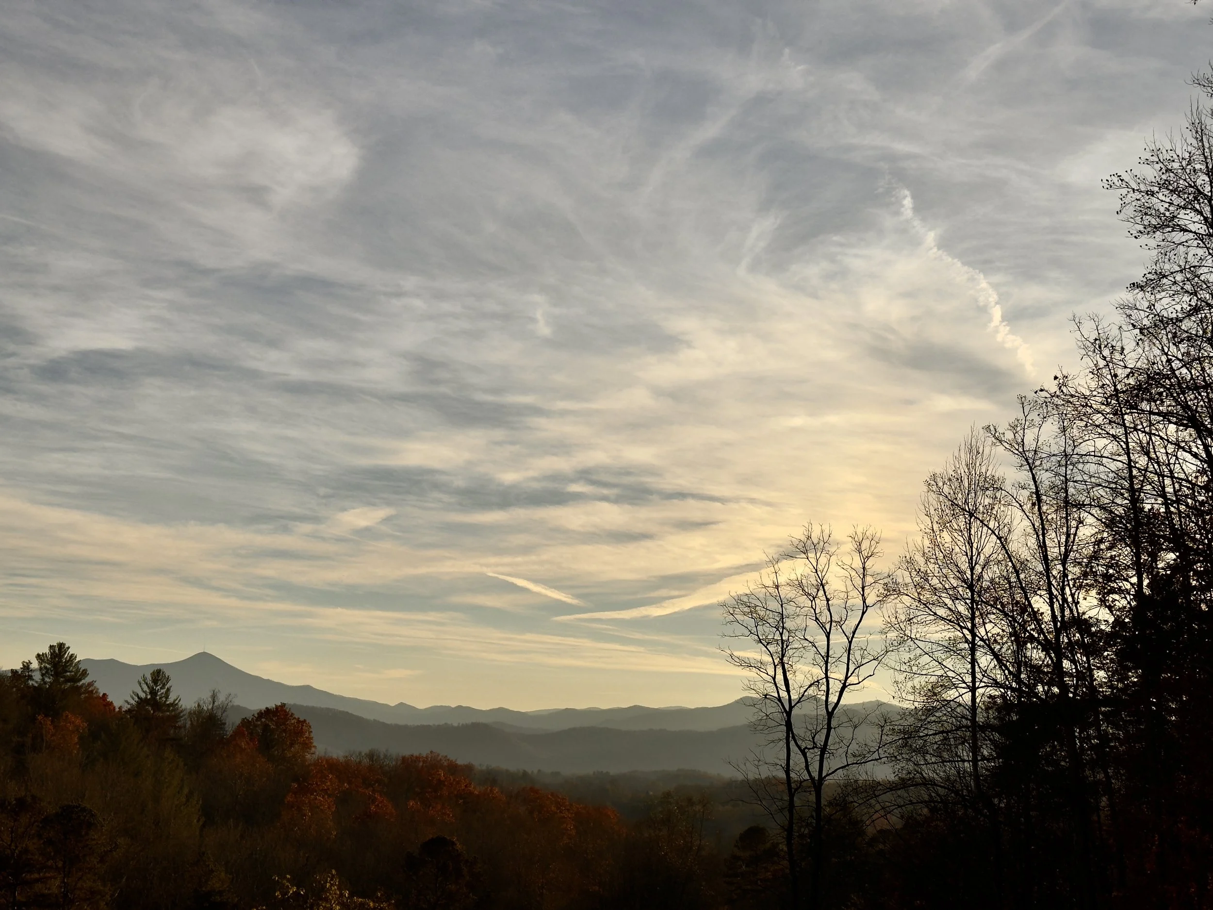 I’m sitting on my porch after weeks of bitter cold. The sun is warming my skin, the wind brushes gently across my face, and the trees and mountains wrap me in quiet strength. I hear the rustling of leaves, the sharp rhythm of a woodpecker, the chatter of squirrels. My dog, Lucy, crunches an autumn leaf, and the deep gong of my owl windchime—a treasured gift—echoes softly in the breeze.